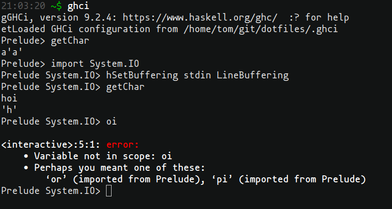 | 2023-05-19 02:12:40 +0200 | <yahb2> | Commands available from the prompt: ; ; <statement> evaluate/run <statement> ; : repeat last command ; :{\n ..lines.. \n:}\n multiline comm... |